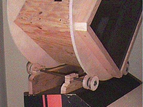 The head piece which contains a 25" monitor turns freely on four support wheels, allowing the monitor to rotate a full 360 degrees.