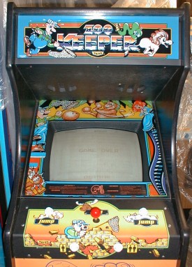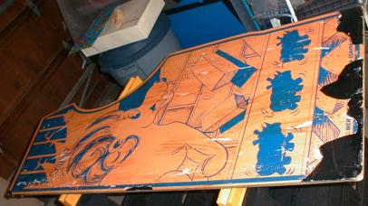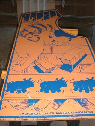 I picked up this cabinet has a converted Rastan at an auction because I saw that underneath the blue lamination was the original Zoo Keeper sideart. Having already had a Zoo Keeper boardset JAMMA-tized in my collection, I figured it wouldn't take much to de-convert and install the original boardset. And even if the cabinet could not be salvaged, it wouldn't hurt as a parts cabinet anyway.