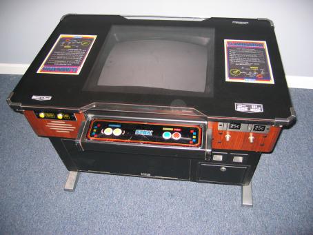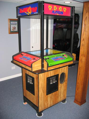 The description above is for the four player version of Eliminator. In this version of the cabinet, players stand at each side of a table that has controls for a ship. This is considered the best version of Eliminator. This cabinet is considered very rare. To date, I have only located about 10 people total who have this cabinet other than myself. Eliminator as has the distinction of being the only 4-player vector game ever made.