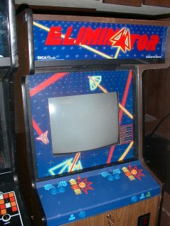 Eliminator was part of the Converta-System introduced by Sega/Gremlin. The system was designed such that operators could easily convert from one game to another just by swapping game cages, controls and artwork WITHOUT having to do any rewiring, and without even having to move the game!